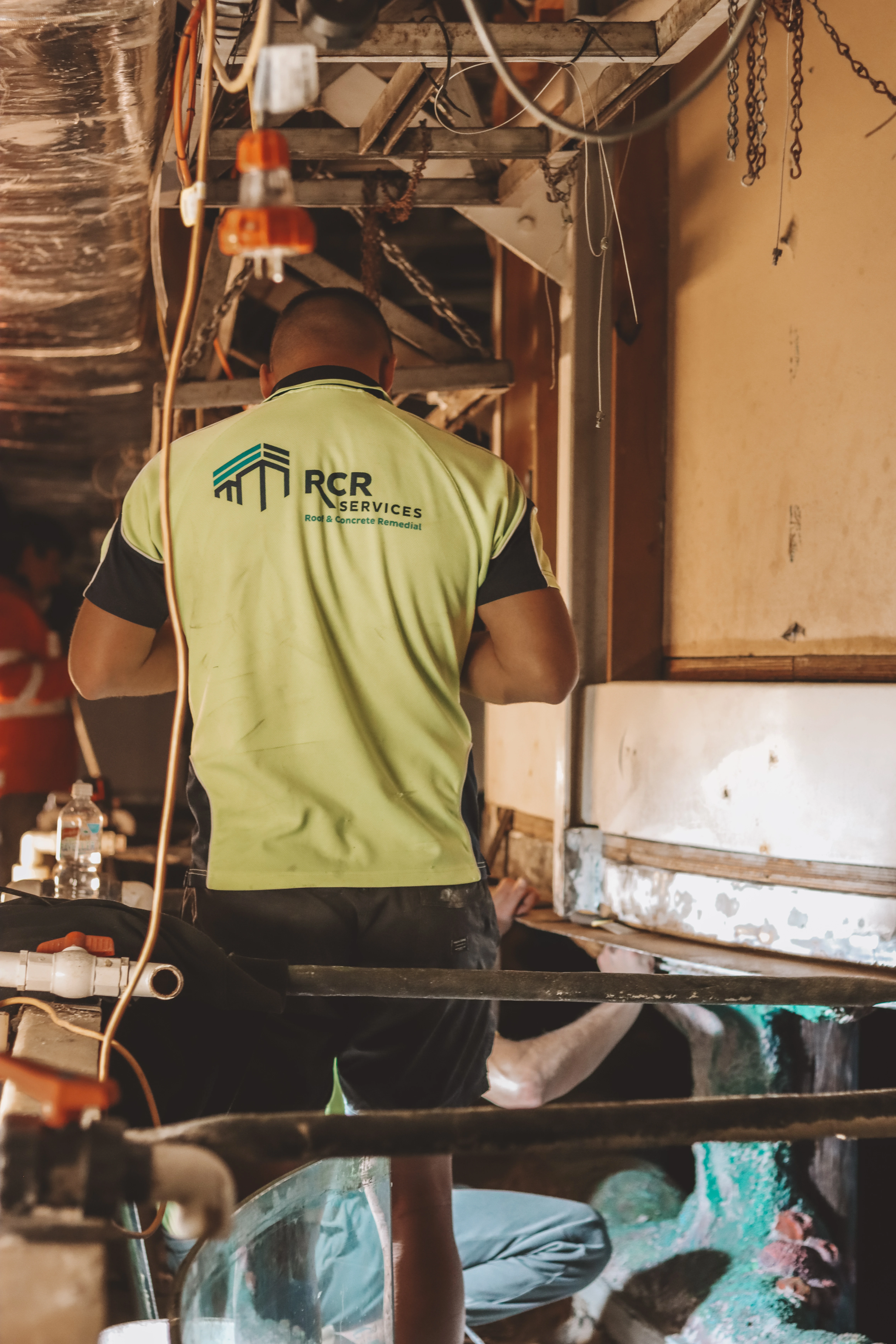 Externally, the existing decking, steel supports, and staircases were dismantled and removed from site. While new fibreglass decking was to be supplied and installed by others, RCR focused on treating all remaining steel corrosion to the structural framing and support posts beneath the tank. These areas were primed and coated with the same marine-grade epoxy system for consistency and durability.